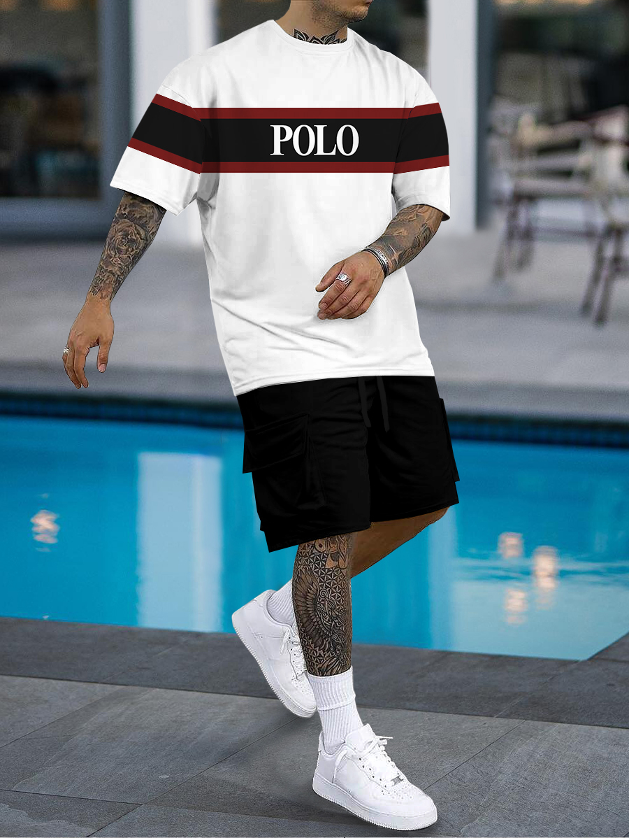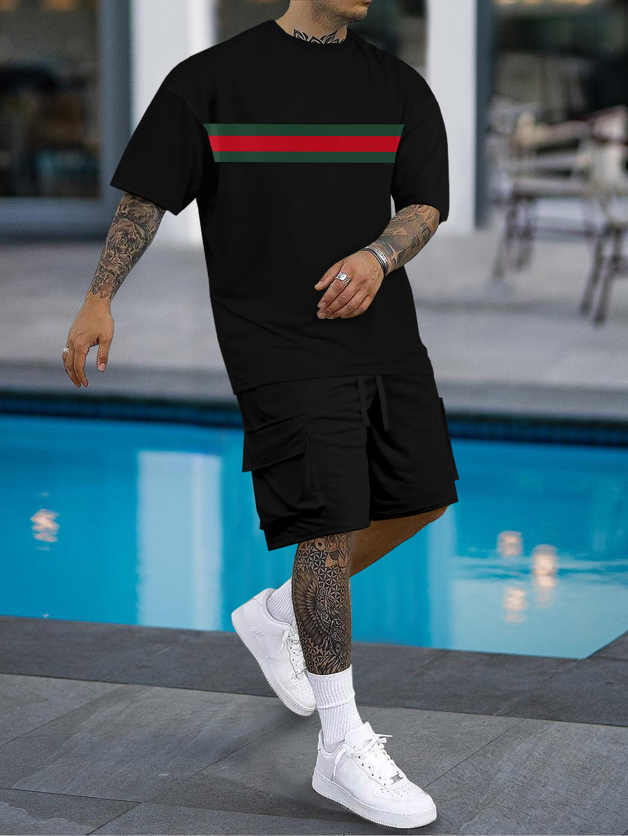 Men's fashion casual color matching printed short-sleeved two-piece set