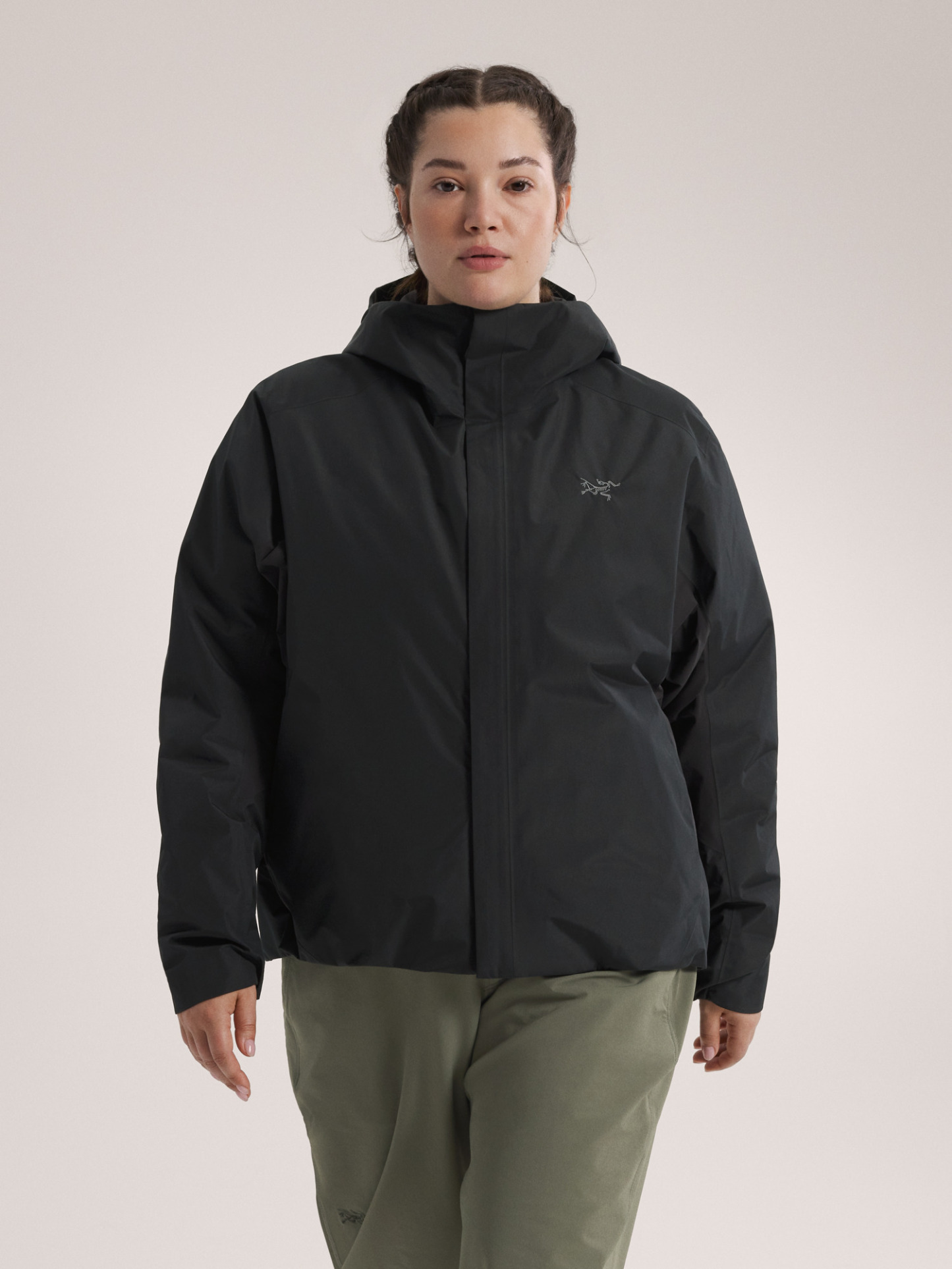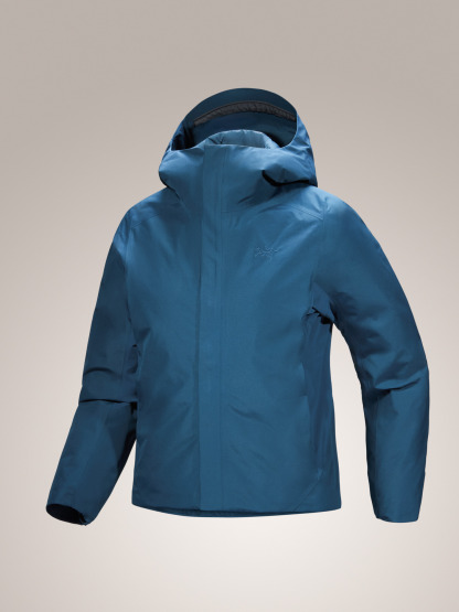 Targeted weather protection, down's warmth, stretch freedom – you pull it on for the hike, you end up wearing it all day. Hybrid Mapping Technology puts a PFAS-free GORE-TEX fabric on the body and sleeves. Breathable Fortius 1.0 softshell on the back and under the arms adds ventilation and stretch. The responsibly sourced 750-fill goose down is placed in box-wall baffles to maximize its efficiency, and low-profile Coreloft™ synthetic insulation is used in the side panels.